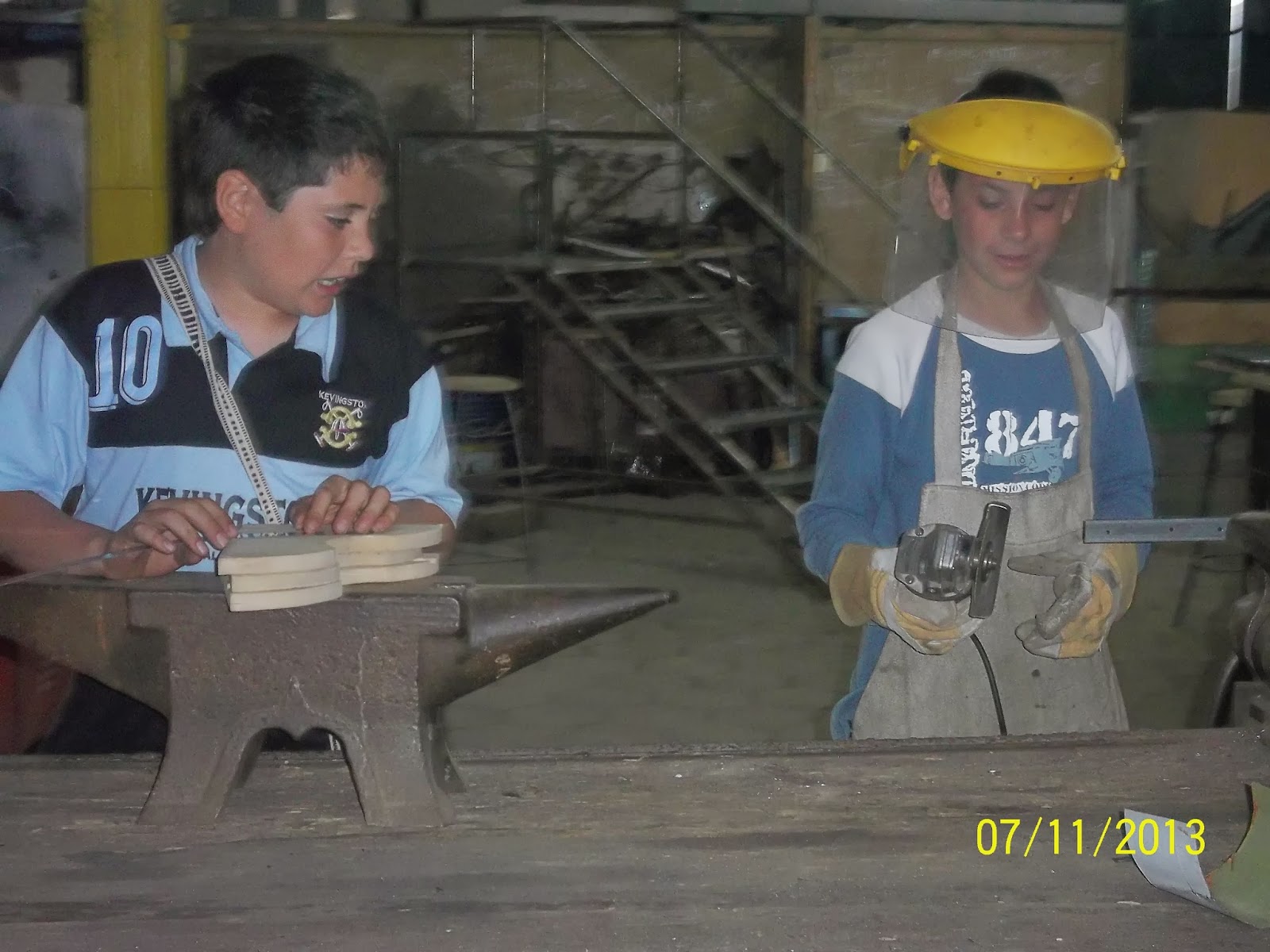 Alumnos de 3ro y 5to Electromecánica prepararon en taller con el profesor Gilardi, José, carteles para panteones cooperativos.